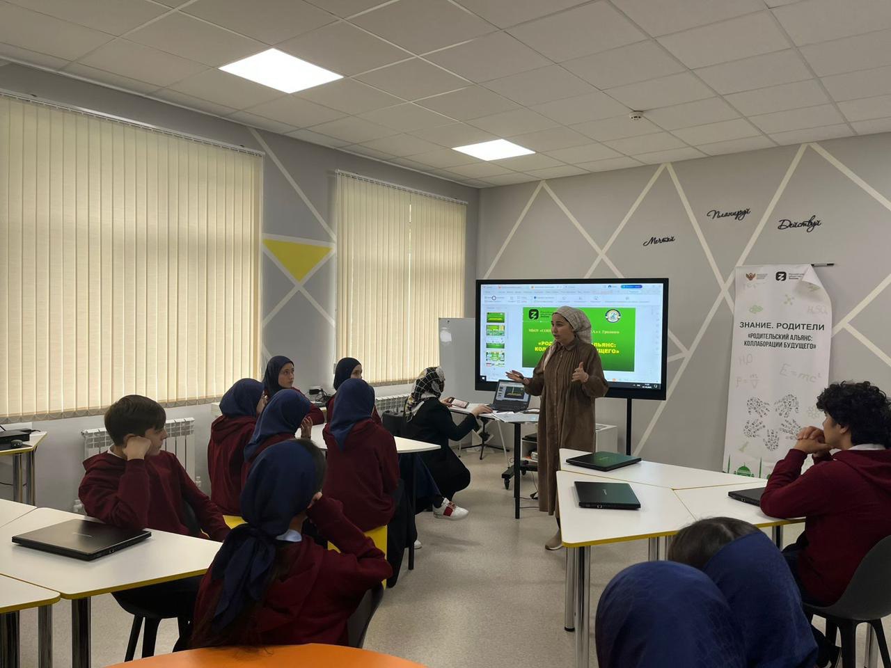 Наша школа носит имя человека, который своими добрыми делами известен и далеко за пределами Чеченской Республики. Президент РОФ им. Героя России Ахмат-Хаджи Кадырова Аймани Несиевна самый достойный пример для подражания. Мы в своей работе всячески способствуем передаче знаний своим учащимся и воспитанию в них самых достойных качеств – на благо региона и страны. В этих стенах делается все возможное для создания благоприятной образовательной среды и привития молодежи безграничной любви к своей родине.