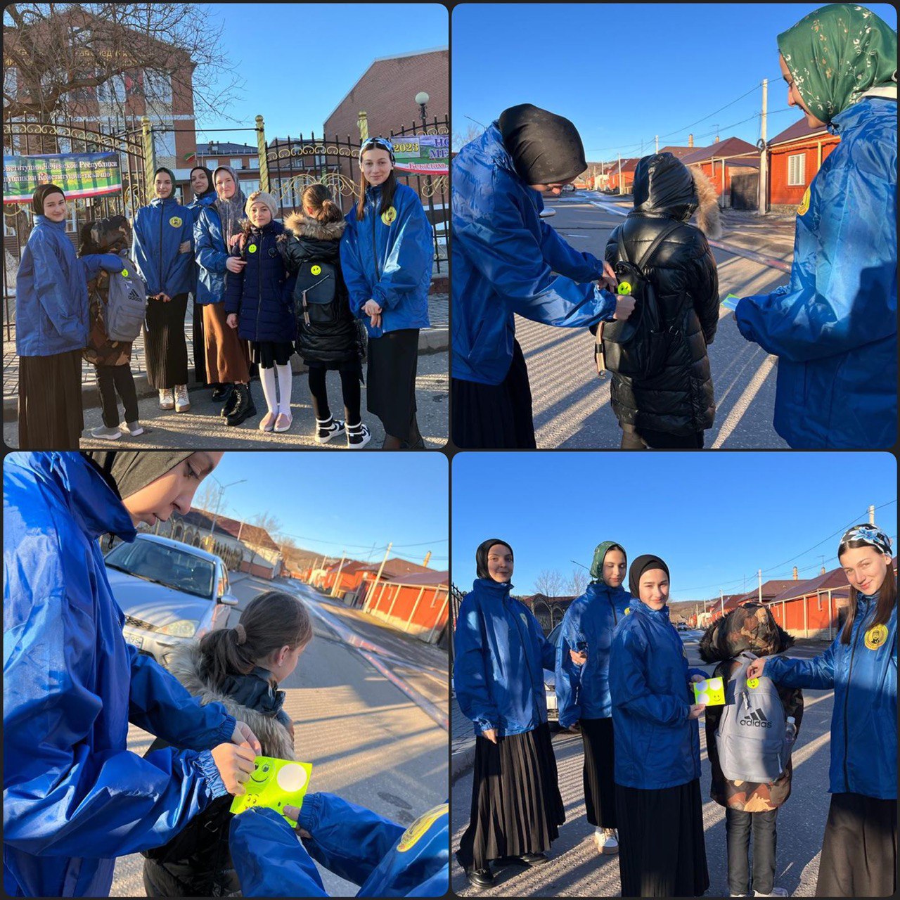 14 февраля в МБОУ "Илсхан-Юртовская СШ им А.Н.Кадыровой" активисты "Движения Первых" и Юные Кадыровцы провели акцию "Засветись! Будь заметен на дороге".
