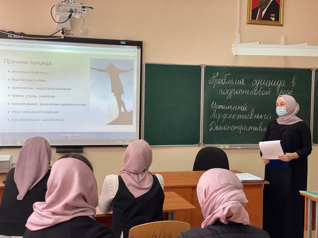 В МБОУ «Илсхан-Юртовская СШ им. Аймани Несиевны Кадыровой» педагог-психолог Закариева З.А. провела семинар для педагогов на тему: «Проблема суицида в подростковой среде».