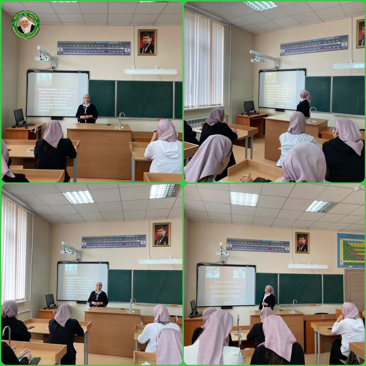 В МБОУ «Илсхан-Юртовская СШ им. Аймани Несиевны Кадыровой» социальный педагог Ларсанова С.А. провела семинар направленный на коррекцию поведения, профилактику правонарушений и восстановления детско-родительских отношений по теме: «Типы семейного воспитания; проблемы детско-родительских отношений в семье».