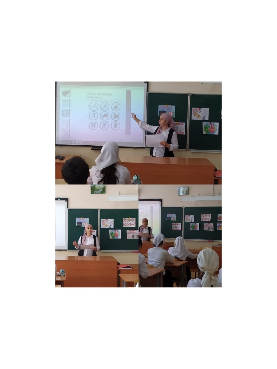 В МБОУ"Илсхан-Юртовская СШ им. Аймани Несиевны Кадыровой" социальный педагог Ларсанова С. А. провела классный час на тему: "Против вредных привычек "