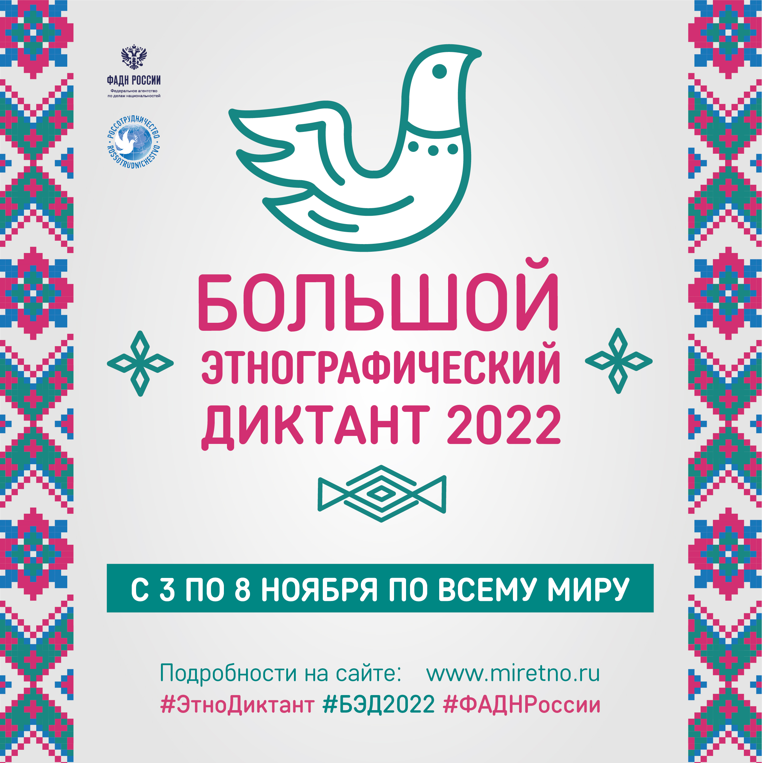с 3 по 8 ноября 2022 международная акция "Большой этнографический диктант"