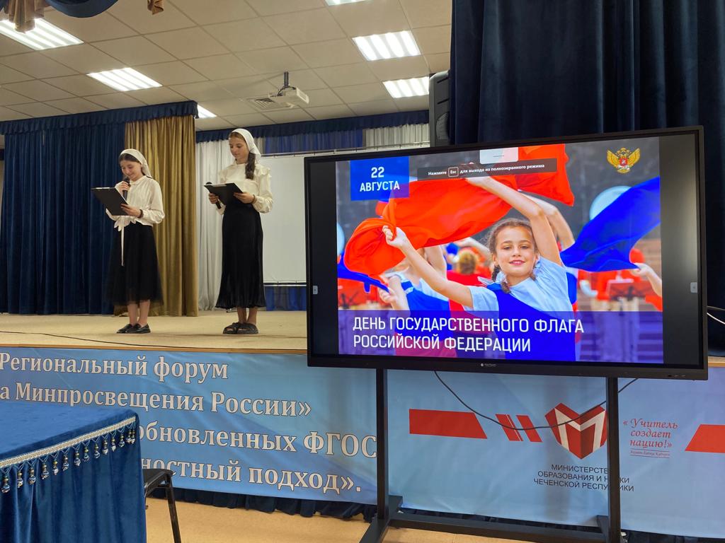 21.08.2023В целях эффективности реализации мероприятий федерального проекта «Патриотическое воспитание граждан Российской Федерации» Нацпроекта «Образование» в МБОУ «Илсхан-Юртовская СШ им.А.Н.Кадыровой» 21.08.23г было проведено мероприятие в актовом зале. Были приглашены учащиеся 5-11 классов и их классные руководители. Цели: расширение исторических знаний учащихся; популяризация государственных символов Российской Федерации; патриотическое и гражданское воспитание подростков, формирование у них чувства гордости и любви к своей Родине.