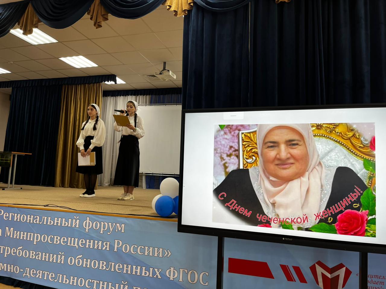 День чеченской женщины учрежден в 2009 году в соответствии с указом главы Чеченской Республики Рамзана Кадырова "в целях усиления роли чеченской женщины в жизни общества". Он отмечается в республике ежегодно по традиции. Этот праздник дань уважения чеченским женщинам, которые во все времена на своих плечах выносили тяготы и лишения, связанные с трагическими событиями истории народа в прошлых столетиях, а также в годы двух военных кампаний. Учащиеся 5-9 классов провели праздничный концерт для всей прекрасной половины школы. Ребята читали стихи, пели песни, танцевали, подготовили сценки. Особенно понравились песни адресованные чеченским матерям .
