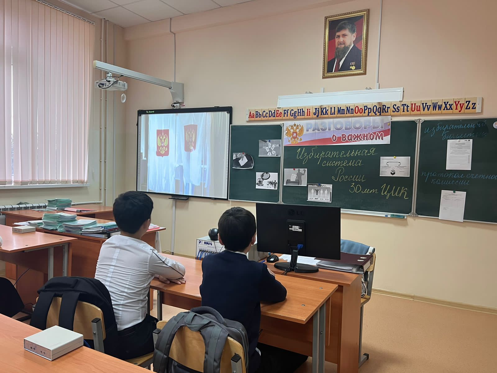 25.09.2023В целях эффективности реализации мероприятий федерального проекта «Патриотическое воспитание» Нацпроекта «Образование» в МБОУ «Илсхан-Юртовская СШ им.А.Н.Кадыровой» 25 сентября прошел цикл уроков «Разговоры о важном" на тему: "Избирательная система России". Цель занятия: формирование гражданской позиции, уважения к конституционным правам граждан России, ответственного отношения к избирательному праву; осознания учащимися необходимости приобретения опыта гражданской социально значимой деятельности.