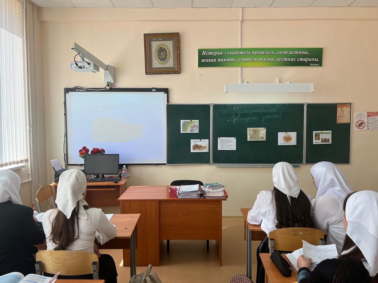 24.01.2024В МБОУ "Илсхан-Юртовская СШ им А,Н.Кадыровой » в рамках федерального проекта «Успех каждого ребёнка» нацпроекта «Образование» учитель истории и обществознания Хойдукаева К.Х. провела внеурочное занятие в 10 «А» классе по теме: « Удивительные факты и истории о деньгах.