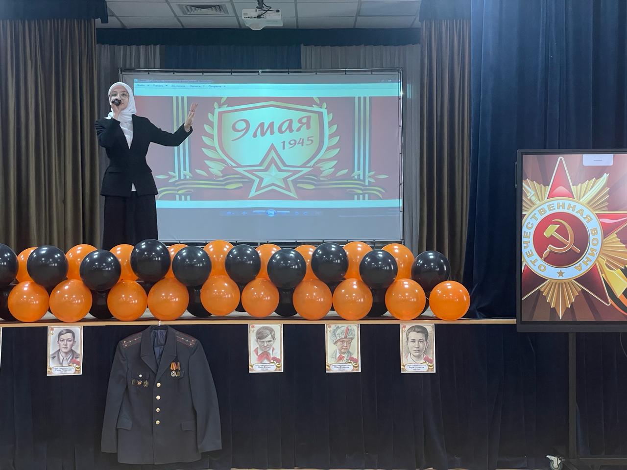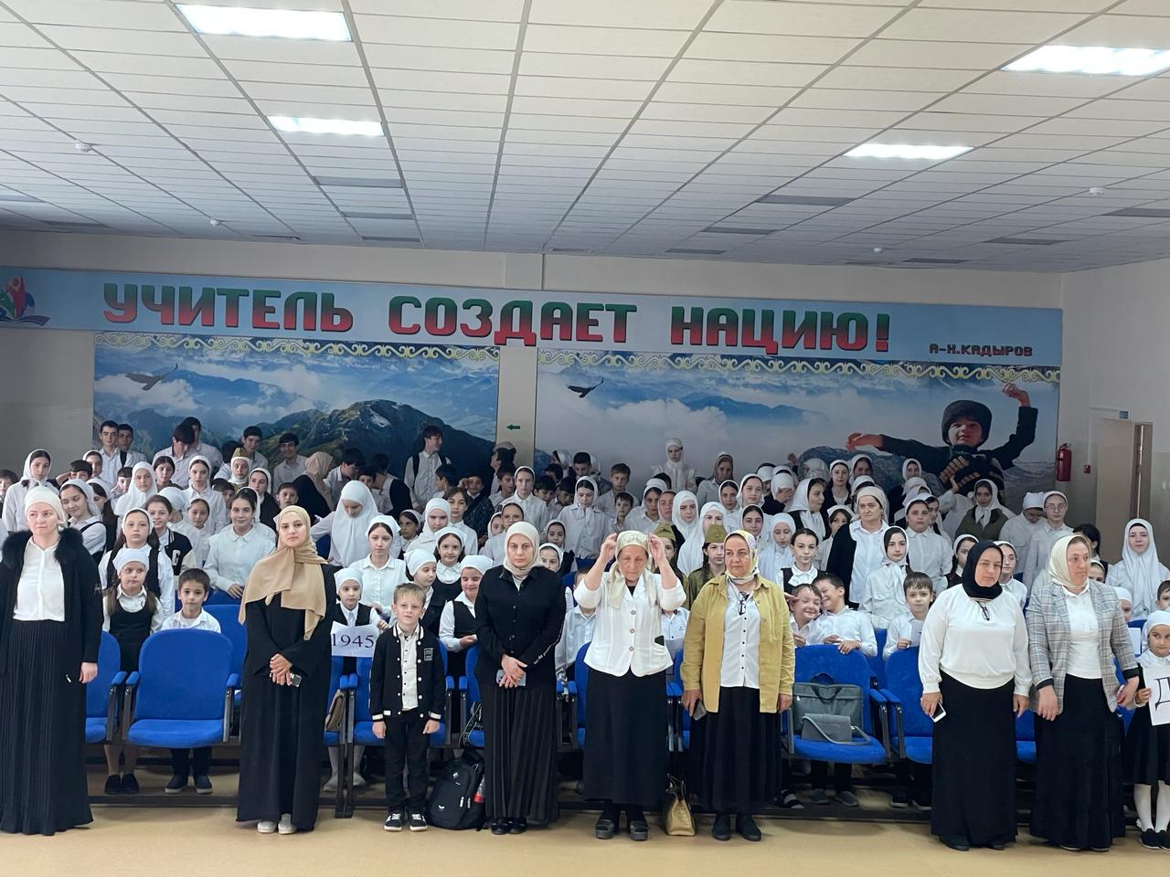 В рамках реализации национального проекта «Образование» федерального проекта «Патриотическое воспитание» в МБОУ «Илсхан-Юртовская СШ им.А.Н.Кадыровой» 8 мая в актовом зале школы прошло праздничное мероприятие для учащихся 1-11 классов посвященного "Дню победы. Целями мероприятия были сохранение и передача памяти о подвиге советских солдат во Второй мировой войне, увековечение памяти о павших героях, а также воспитание у учащихся чувства патриотизма и уважения к историческому прошлому своей страны.