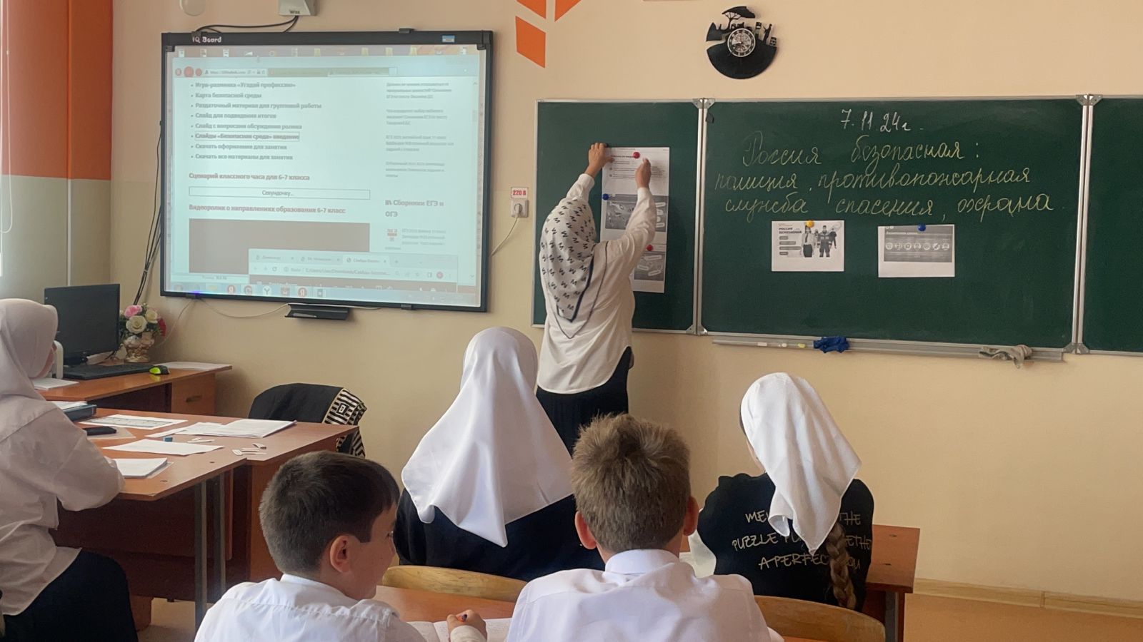7 ноября в МБОУ «Илсхан- Юртовская СШ им. А.Н.Кадыровой» в 6-11 классах прошло занятие по внеурочному курсу «Россия-мои горизонты» на тему «Россия безопасная: полиция, противопожарная служба, служба спасения, охрана». Ребята продолжили исследовать различные профессиональные среды и отрасли и поговорили о полиции, противопожарной службе, службе спасения и охране. В начале занятия ребята выделили все отрасли, которые относятся к определенной профессиональной среде. Ребята получили рабочую карту, в которую в течении всего занятия записывали название отраслей. Потом ребята поработали в командах. Каждая команда отвечала за одну из отраслей в Безопасной среде и её специалистов. Следующим заданием была групповая работа «Что поможет стать профессионалом», в котором ребята прошли анкетирование. Таким образом, в течении занятия ребята узнали больше о работе в отраслях Безопасной среды. А так же, мы отметили, что 10 ноября — День сотрудника органов внутренних дел Российской Федерации.
