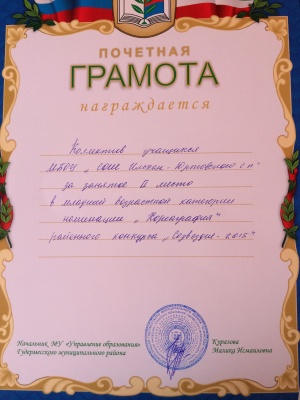 Учащиеся нашей школы выступили на районном конкурсе "Созвездие-2015" с танцем "Веселые поварята" и заняли 2-е место в номинации "Хореография".