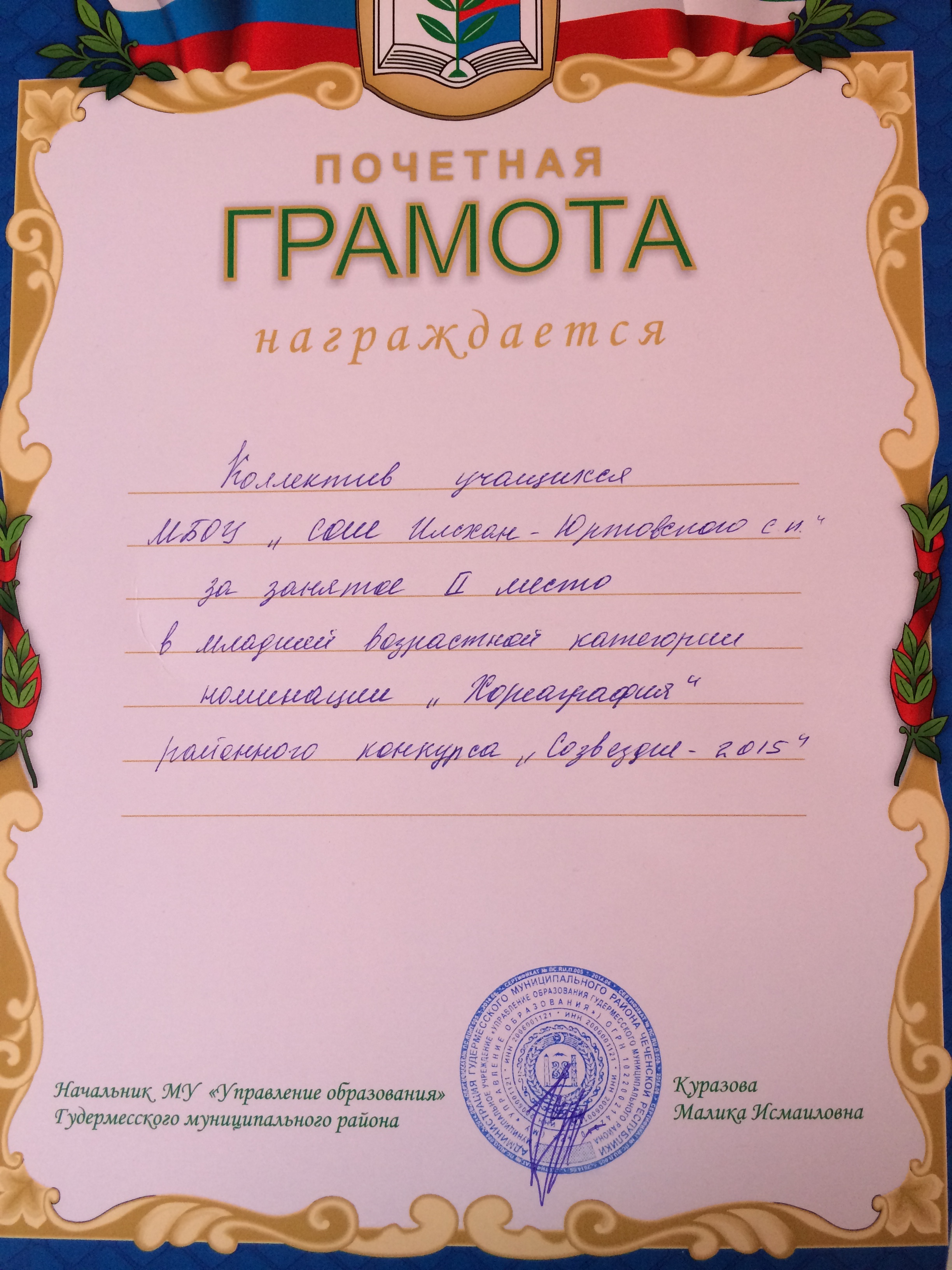 Муниципальное бюджетное общеобразовательное учреждение "Илсхан-Юртовская средняя школа имени Аймани Несиевны Кадыровой"
