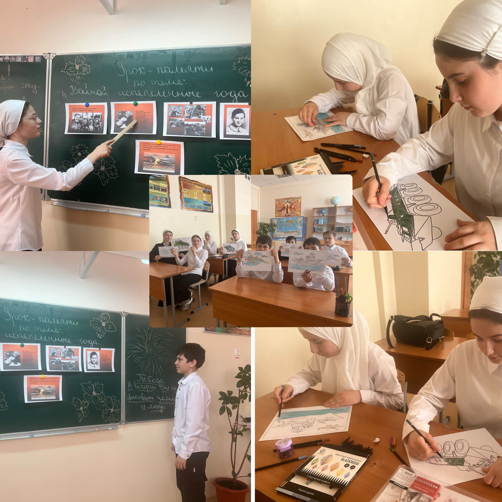 В МБОУ «Илсхан-Юртовская СШ им А.Н. Кадыровой» провела урок - памяти по теме: «Войной испепеленные года». У времени есть своя память – история. И поэтому мир никогда не забывает о трагедиях, потрясавших планету в разные эпохи, в том числе и о жестоких войнах , уносивших миллионы жизней, отбрасывавших назад цивилизации, разрушавших великие ценности, созданные человеком.