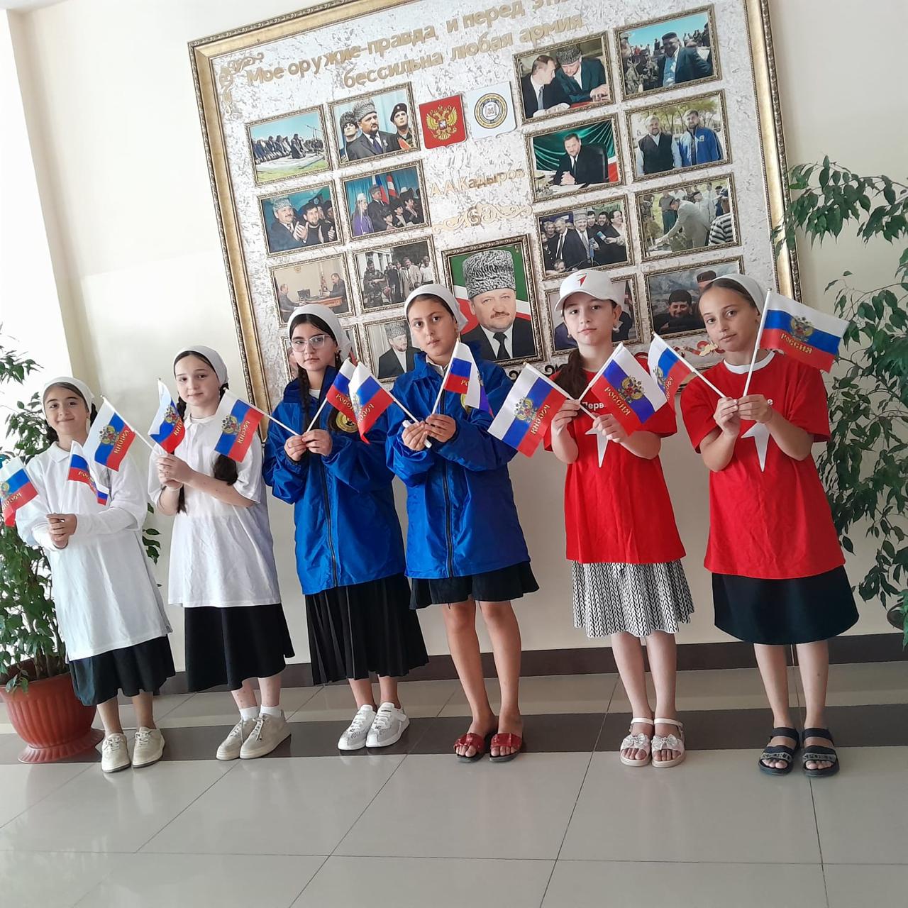 День Российского флага – это праздник всех поколений россиян, дань уважения истории великой страны. Трехцветный стяг неразрывно связан со становлением Российского государства, он стал символом военных побед и достижений. Этот праздник вызывает в нас чувство гордости за свою великую страну, за наших соотечественников. Торжественно и гордо прозвучал гимн России в начале мероприятия, дети с большим вниманием слушали. Затем ведущие мероприятия Бахаева Камила и Садулаева Нурьян рассказали, что ежегодно с 1994 года 22 августа в России отмечается День Государственного флага Российской Федерации. Флаг, как символ государственности, неразрывно связан с историей страны.