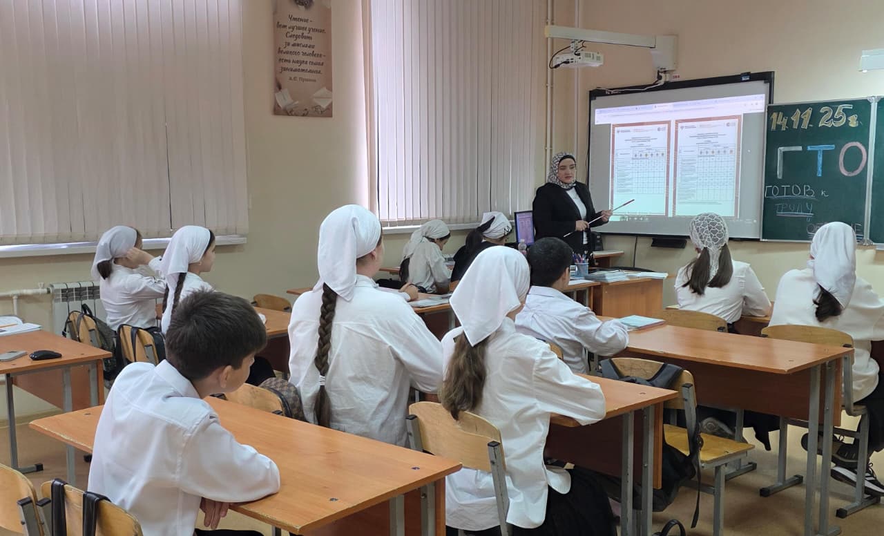 17.11.2025В соответствии с планом работы по внедрению и реализации Вероссийского физкультурно-спортивного комплекса «Готов к труду и обороне», утвержденным приказом ГБУ ДО «Республиканский детско-юношеский центр физического воспитания, спорта и туризма» от 03.09.2025г №75, а также МУ «Отдел образования Курчалоевского района» в нашей школе недавно прошли тематические уроки и классные часы, посвящённые Всероссийскому физкультурно‑спортивному комплексу «Готов к труду и обороне» (ГТО).