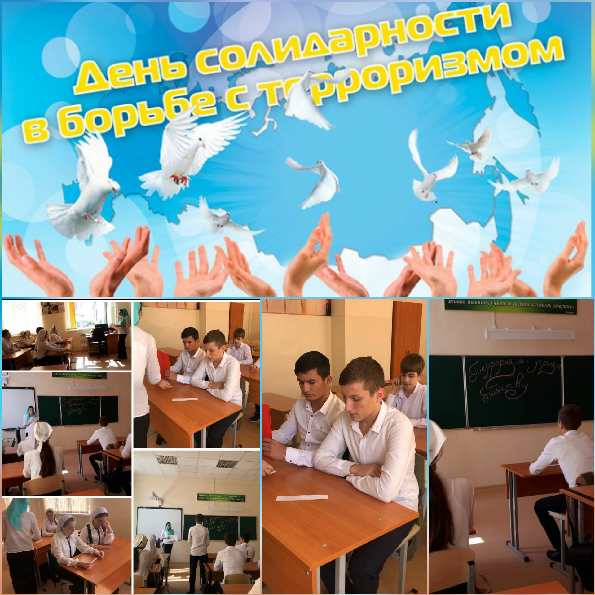 3 сентября в знак солидарности в борьбе с терроризмом во 2-11 классах были проведены классные часы на тему «Терроризм-угроза обществу!».