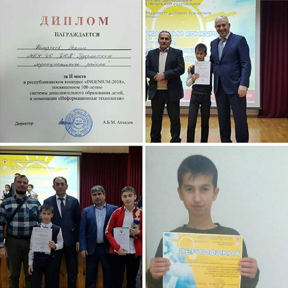 23.11.201822.11.2018 года в г. Грозном прошел республиканский конкурс "INGENIUM-2018", посвященный 100-летию дополнительного образования детей. В этом конкурсе приняли участие 72 юных исследователя и изобретателя региона, которые смогли представить свои собственные разработки и проекты в 6-ти номинациях. Наш ученик Темергаев Рахим участвовал в конкурсе от МБУ ДО "ДЮТ Гудермесского муниципального района" и занял 2 место в номинации "Информационные технологии".