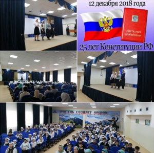 11.12.2018В целях популяризации идеи единения многонационального народа Российской Федерации через любовь к Родине, к своему народу, к своей истории, согласно плану работы школы сегодня 11 декабря 2018 года в актовом зале МБОУ «Илсхан-Юртовская СШ им. Кадыровой Аймани» активистами ЕДЮО «Юные Кадыровцы» совместно с МОПД «АХМАТ» было проведено мероприятие, посвященное Дню Конституции Российской Федерации. Целью данного мероприятия являлось:формирование у учащихся понимания сущности и значения Конституции и государственных символов Российской Федерации,воспитания чувства уважения, гордости, патриотизма, расширения кругозора и повышения общей культуры учащихся.