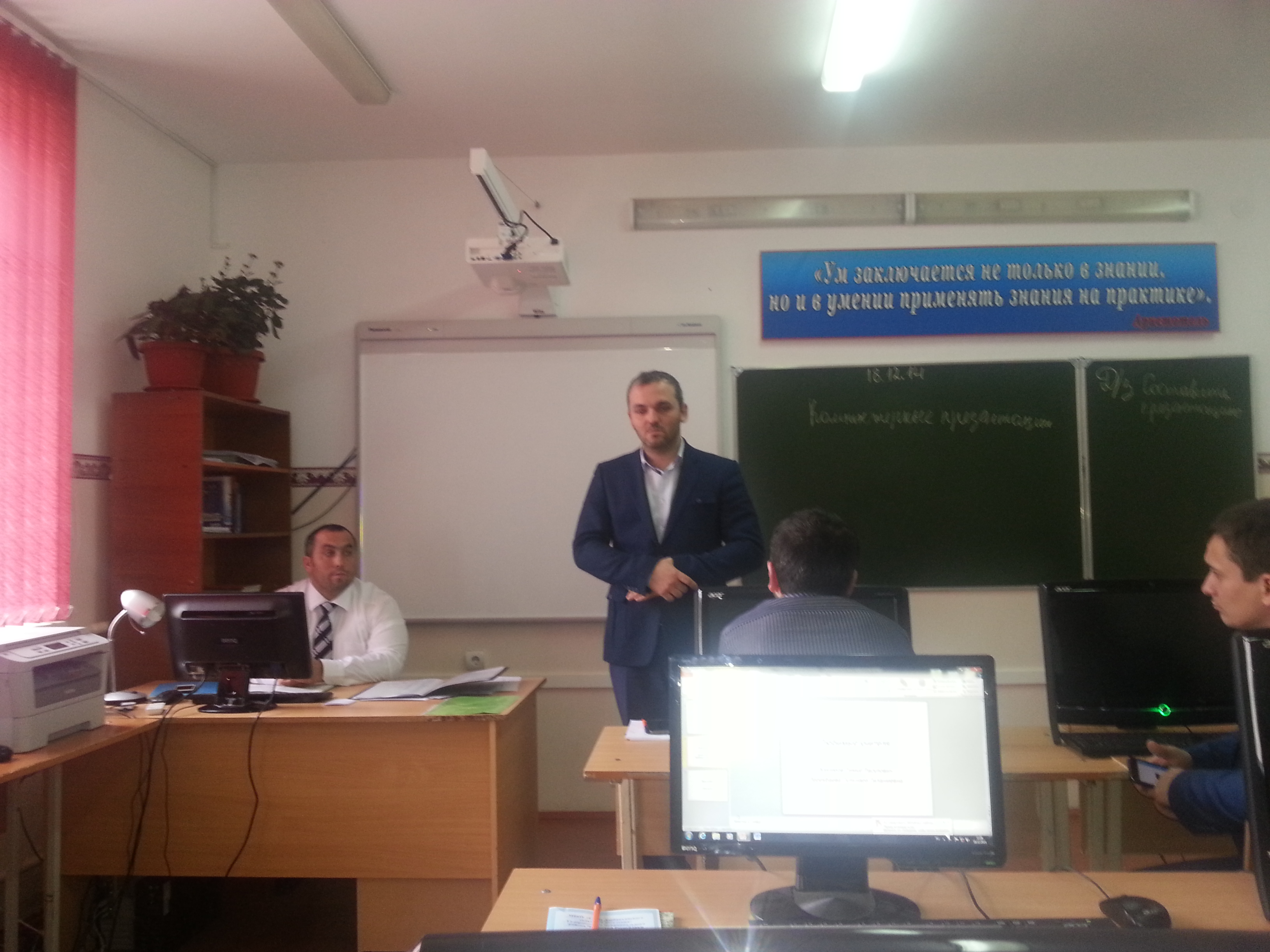 18.12.2014В МБОУ «СОШ Дарбанхинского сельского поселения» прошел районный семинар учителей информатики и ИКТ. Тема семинара учителей информатики звучала так: "Использование информационно- коммуникационных технологий в формировании информационной компетентности учащихся". На семинаре учитель информатики МБОУ «СОШ Дарбанхинского сельского поселения» Хакимов Т.Р.показал урок в 10 классе по теме «Компьютерные презентации», зам.дир. по ИКТ МБОУ «СОШ им.Аймани Кадыровой Илсхан-Юртовского с/п» Атаева Х.П. прочитала доклад на тему «Развитие творческих способностей у учащихся на уроках информатики». Семинар всем понравился.